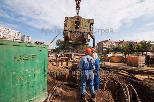 Извлечение шпунтовых ограждений при строительстве спортивного комплекса.