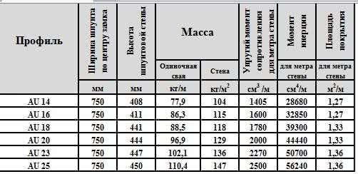 Технические характеристики шпунта AU