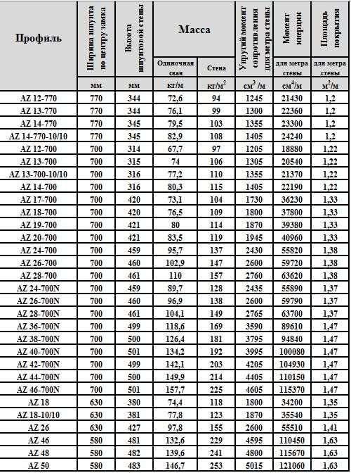 Технические характеристики шпунта AZ