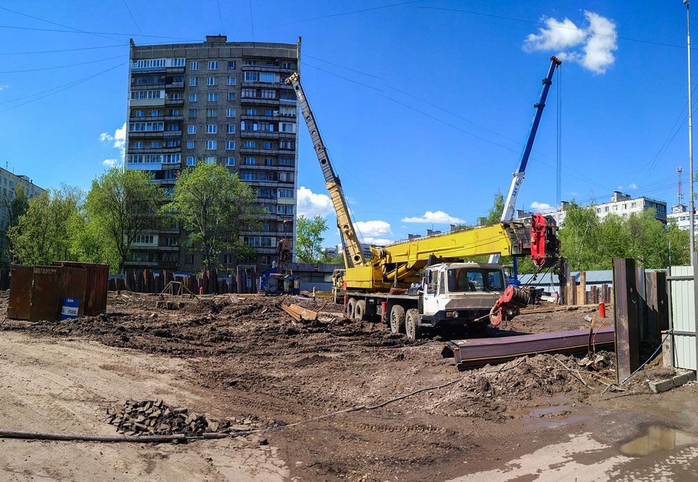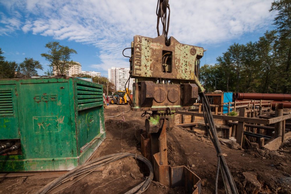Устройство шпунтового ограждения из шпунта Ларсена методом вибропогружения на объекте строительства административного здания в г. Москва, ул. Байкальская, 42.