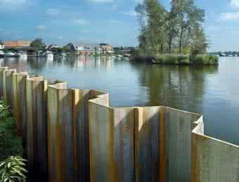 Для фиксации откосов используем профильные (чаще всего корытообразные) и трубчатые металлические шпунты. Последние отличаются повышенной устойчивостью.