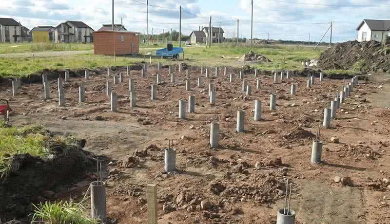 • сухой – скважина, арматура, бетон и никаких дополнительных приспособлений. Метод применяется в достаточно плотном грунте, где грунтовые воды находятся глубоко. Допустимая глубина погружения – до 30 метров, сечение сваи – 40-120 см;